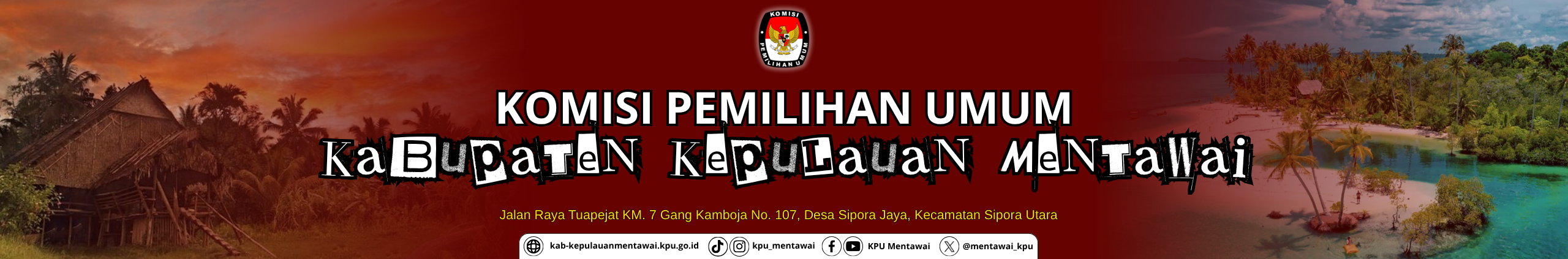 Selamat Datang di Website Resmi Komisi Pemilihan Umum Kabupaten Kepulauan Mentawai | KPU Kabupaten Kepulauan Mentawai mengucapkan terima kasih kepada seluruh Masyarakat Kabupaten Kepulauan Mentawai atas partisipasi pada Pemilihan Umum dan Pemilihan Serentak Tahun 2024