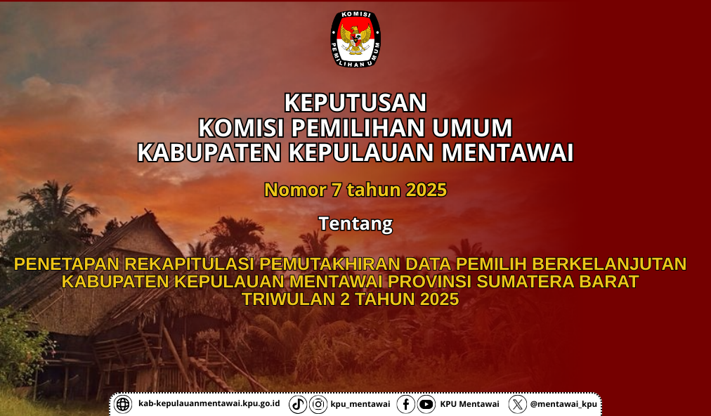 Keputusan Komisi Pemilihan Umum Kabupaten Kepulauan Mentawai Nomor 7 Tahun 2025 Tentang Penetapan Rekapitulasi Pemutakhiran Kabupaten Kepulauan Mentawai Triwulan 2 Tahun 2025