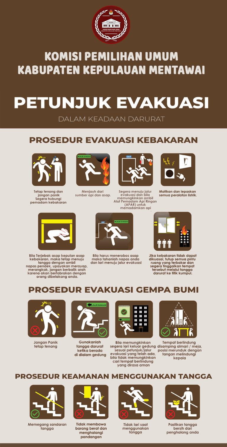 - Ikuti Petunjuk: Patuhi semua petunjuk yang diberikan oleh petugas keamanan atau penanggung jawab evakuasi.