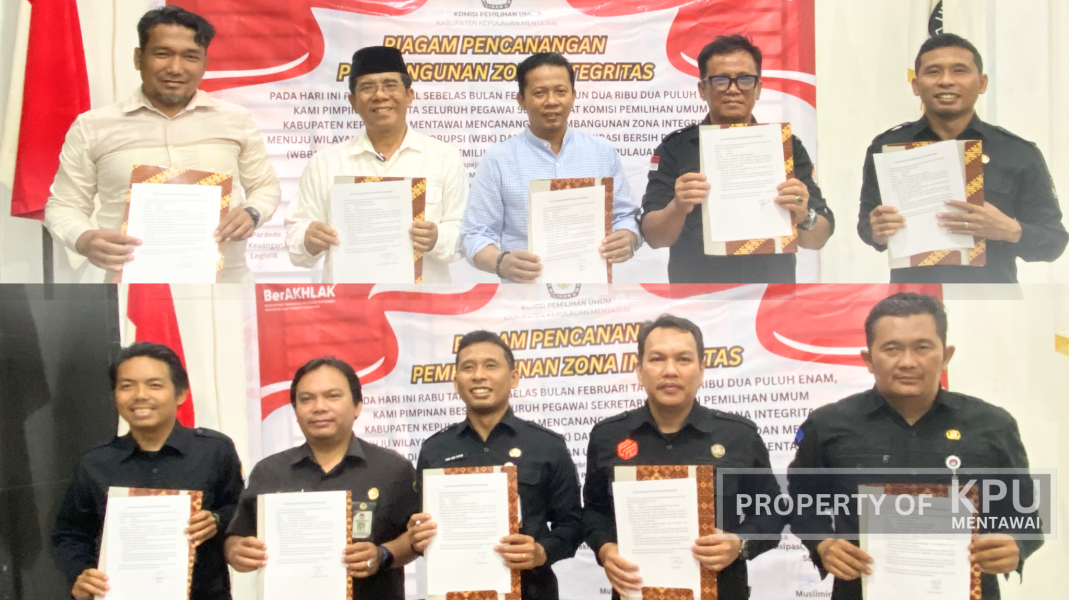 Komisi Pemilihan Umum (KPU) Kabupaten Kepulauan Mentawai melaksanakan kegiatan Pencanangan Pembangunan Zona Integritas pada Rabu (11/02) Aula Rapat kantor KPU Mentawai. Kegiatan ini diikuti oleh seluruh jajaran, mulai dari Ketua KPU, Anggota KPU,Sekretaris, para Kasubbag hingga staf sekretariat. Bertindak sebagai pemimpin kegiatan adalah Saudara Halomoan Pardede, Ketua KPU Kabupaten Kepulauan Mentawai.
