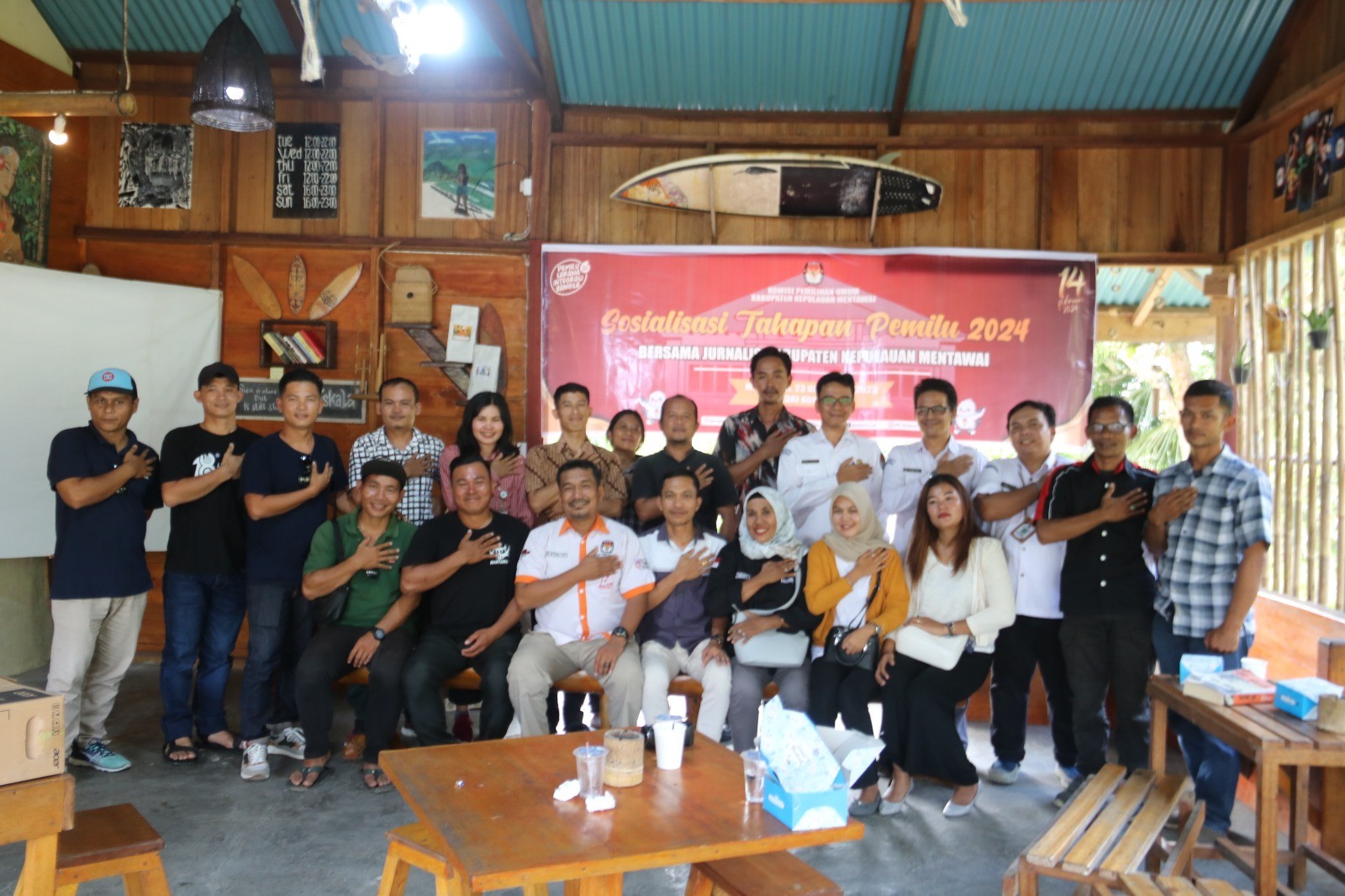 Kepulauan Mentawai - Untuk meningkatkan pemahaman dan pengetahuan masyarakat terhadap Pemilihan Umum (Pemilu) serentak 2024, Komisi Pemilihan Umum (KPU) Kabupaten Kepulauan Mentawai (Mentawai) Sosialisasi Tahapan Pemilu Serentak 2024 bersama jurnalis Mentawai di Kedai Kopi Lulak, Kamis (23/11/2023).
