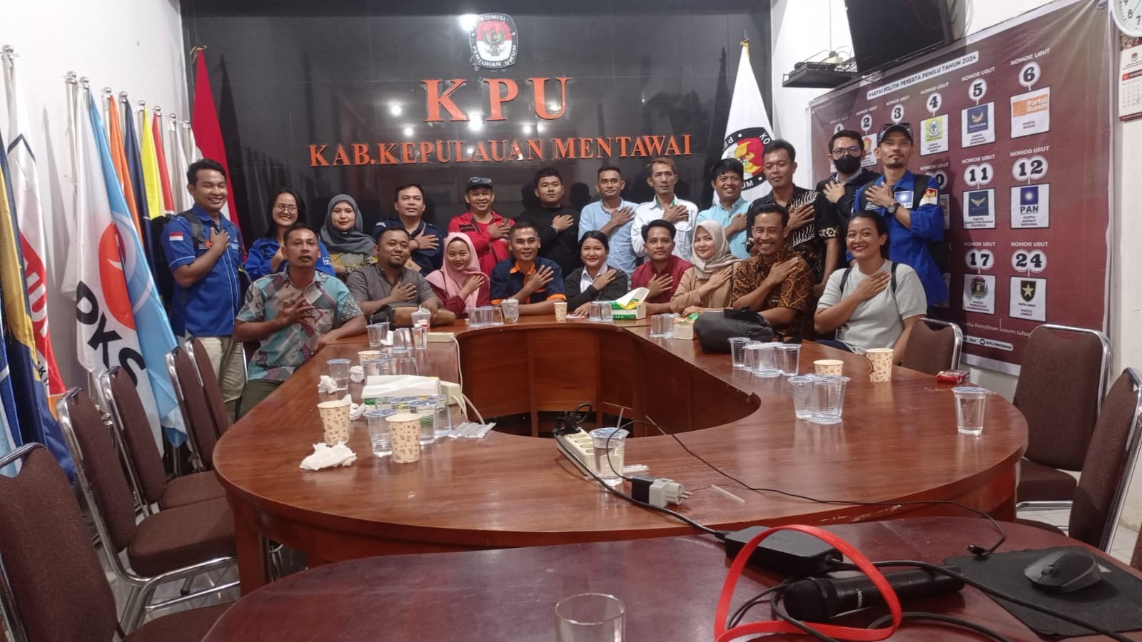 Kegiatan tersebut dihadiri oleh Ketua KPU Mentawai beserta anggota, Kasubbag Teknis Penyelenggara Pemilu, Partisipasi dan Hubungan Masyarakat, Bawaslu Mentawai dan Staf Sekretariat KPU Mentawai. (Humas/Canang)