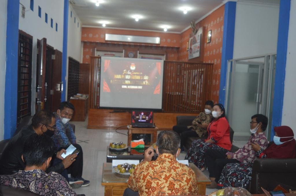 Senin/ 14 Februari 2022, Komisi Pemilihan Umum (KPU) Kabupaten Kepulauan Mentawai menyaksikan secara live streaming Peluncuran Hari Pemungutan Suara Pemilu Serentak Tahun 2024 di ruang rapat kantor KPU Mentawai.