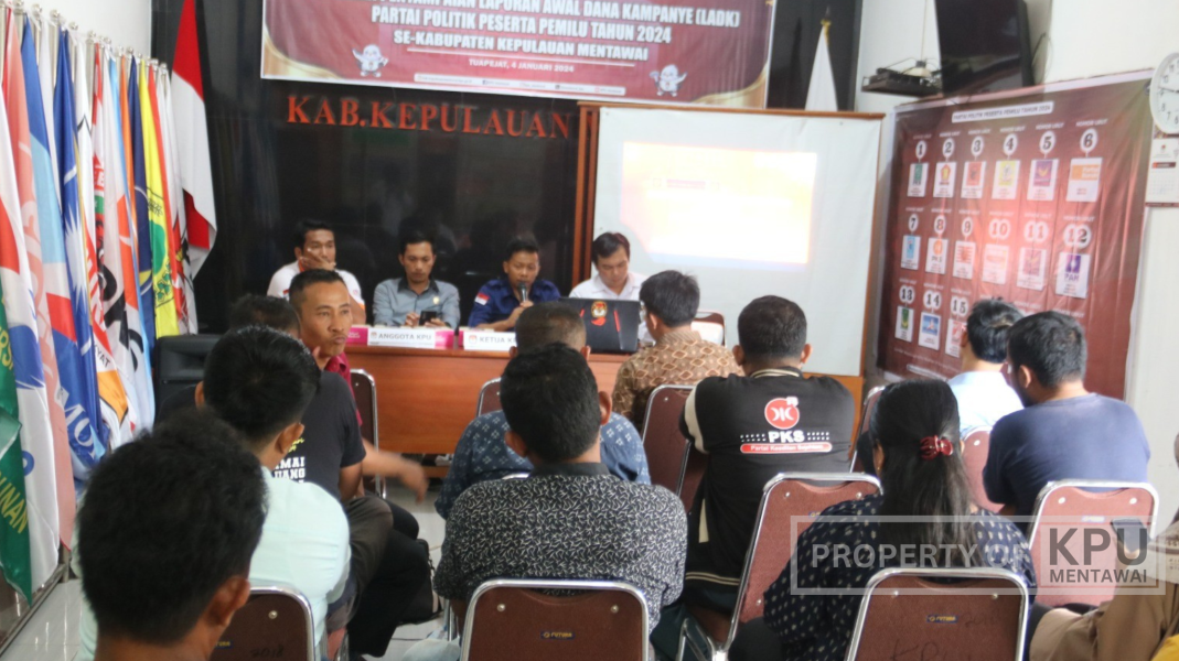 Kepulauan Mentawai - Komisi Pemilihan Umum (KPU) Kabupaten Kepulauan Mentawai (Mentawai) menggelar rapat koordinasi (Rakor) persiapan pelaporan awal dana kampanye bagi partai politik peserta pemilu tahun 2024, rakor dilaksanakan di Ruang Rapat Kantor KPU Mentawai, Kamis (4/1/2024).