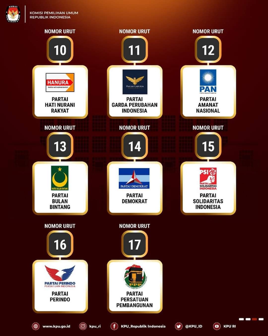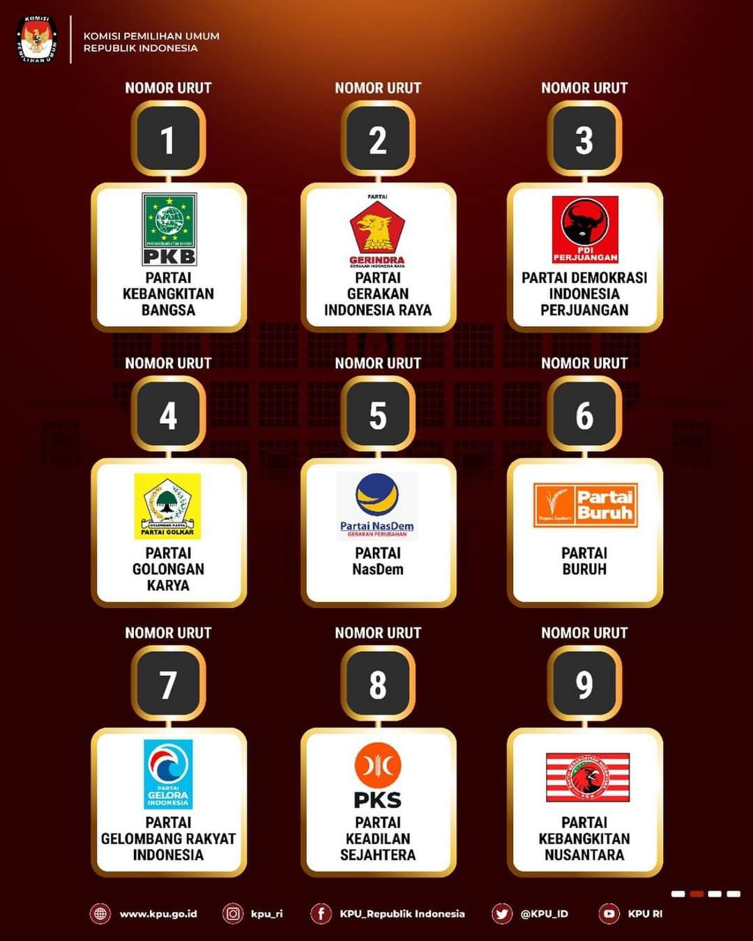 NOMOR URUT PARTAI POLITIK PESERTA PEMILU 2024