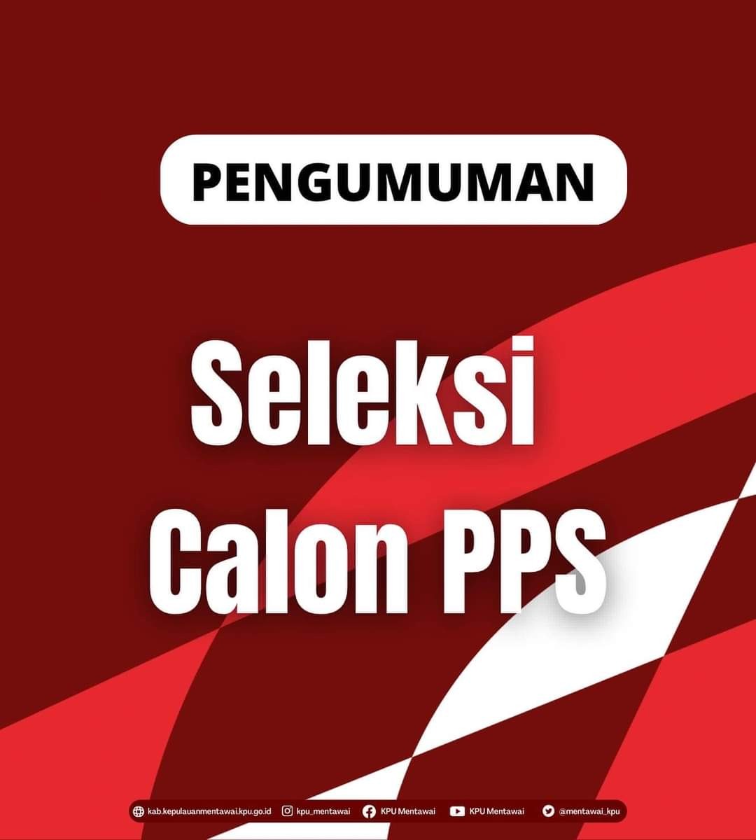 Sehubungan semakin dekatnya Pemilihan Umum Tahun 2024, maka KPU mentawai melaksanakan seleksi calon anggota PPS, untuk itu pengumuman persyaratan dapat dilihat pada link di bawah ini :
