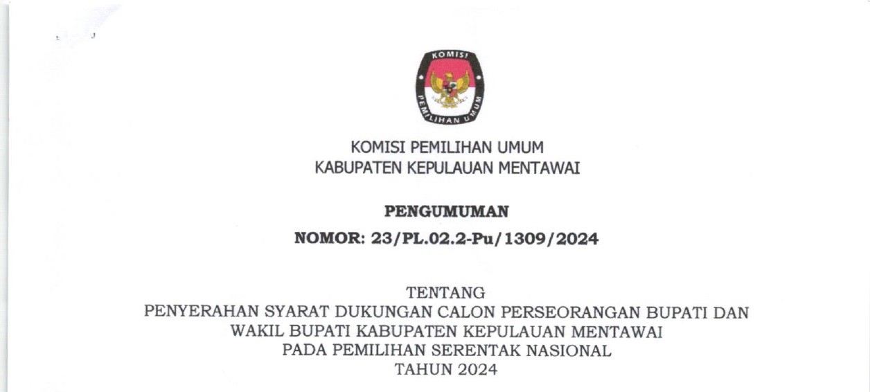 PENGUMUMAN PENYERAHAN SYARAT DUKUNGAN CALON PERSEORANGAN BUPATI DAN WAKIL BUPATI KEPULAUAN MENTAWAI