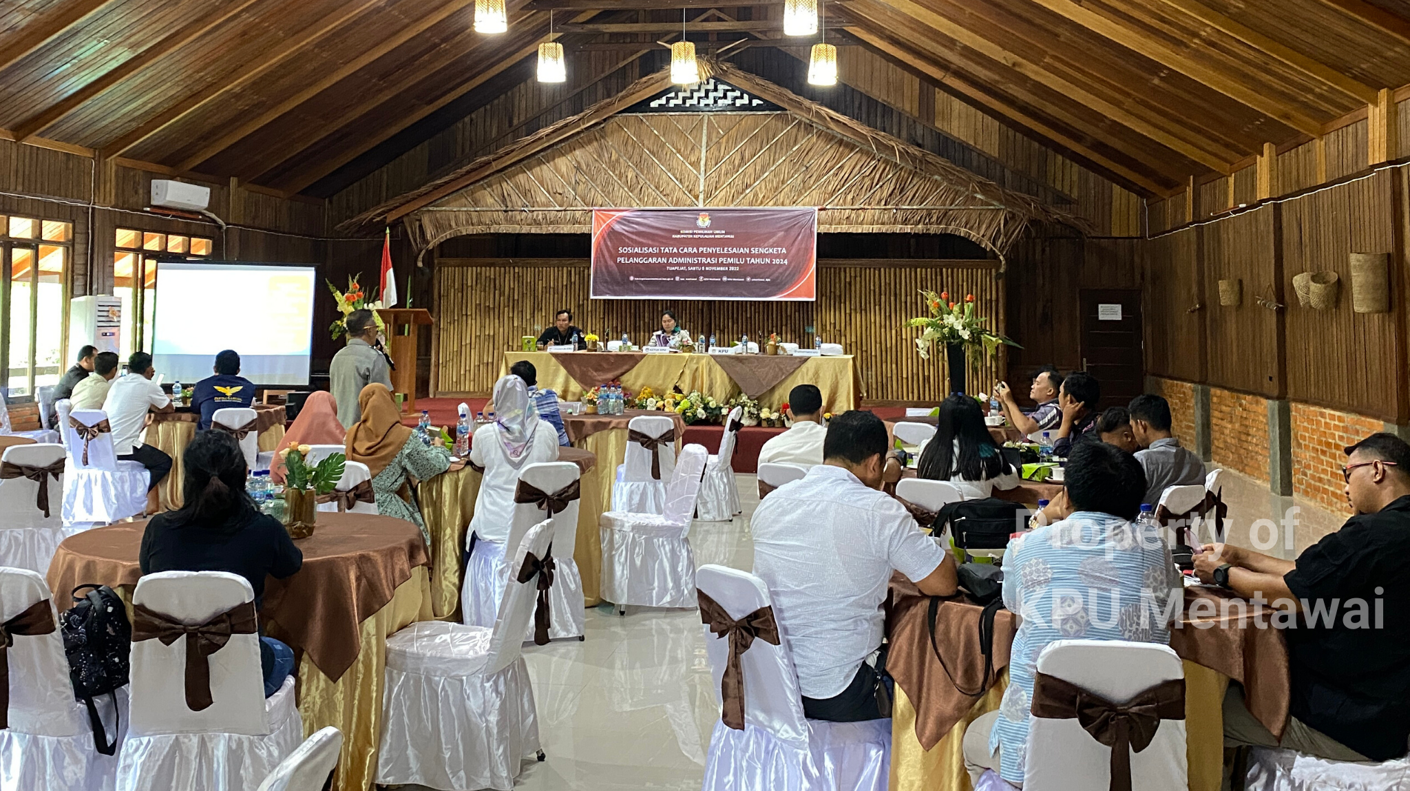 Ketua KPU Kabupaten Kepulauan Mentawai dalam sambutannya menyampaikan bahwa sosialisasi ini penting untuk dilakukan sehingga proses yang dilaksanakan sesuai dengan aturan yang berlaku.